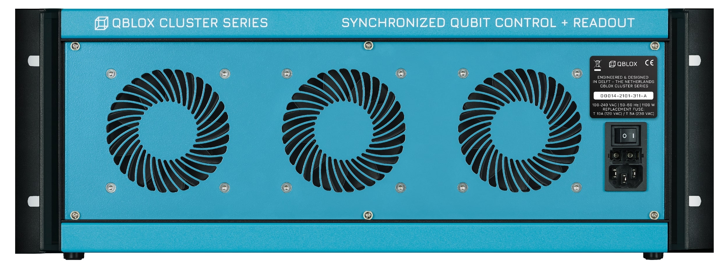 20× module slots: each can be occupied by any module among QCM, QCM-RF II, QRM, QRM-RF or it can be left unoccupied. New modules can be added at any time when the cluster is switched off as the quantum device scales.